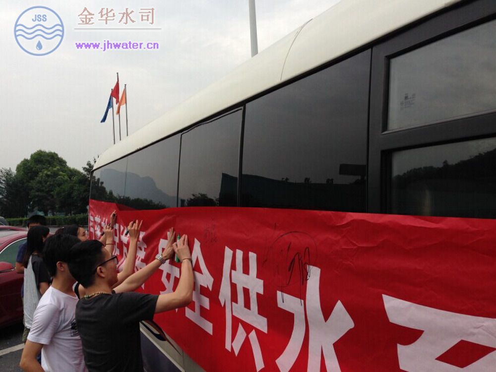 最后,大家在印有“朝氣蓬勃促發展、安全供水系萬家”的橫幅上簽下自己的名字,并莊重承諾:作為供水人,我們要時刻心系崗位職責,為了讓千家萬戶的老百姓能夠喝上優質放心的自來水努力、細致地工作。