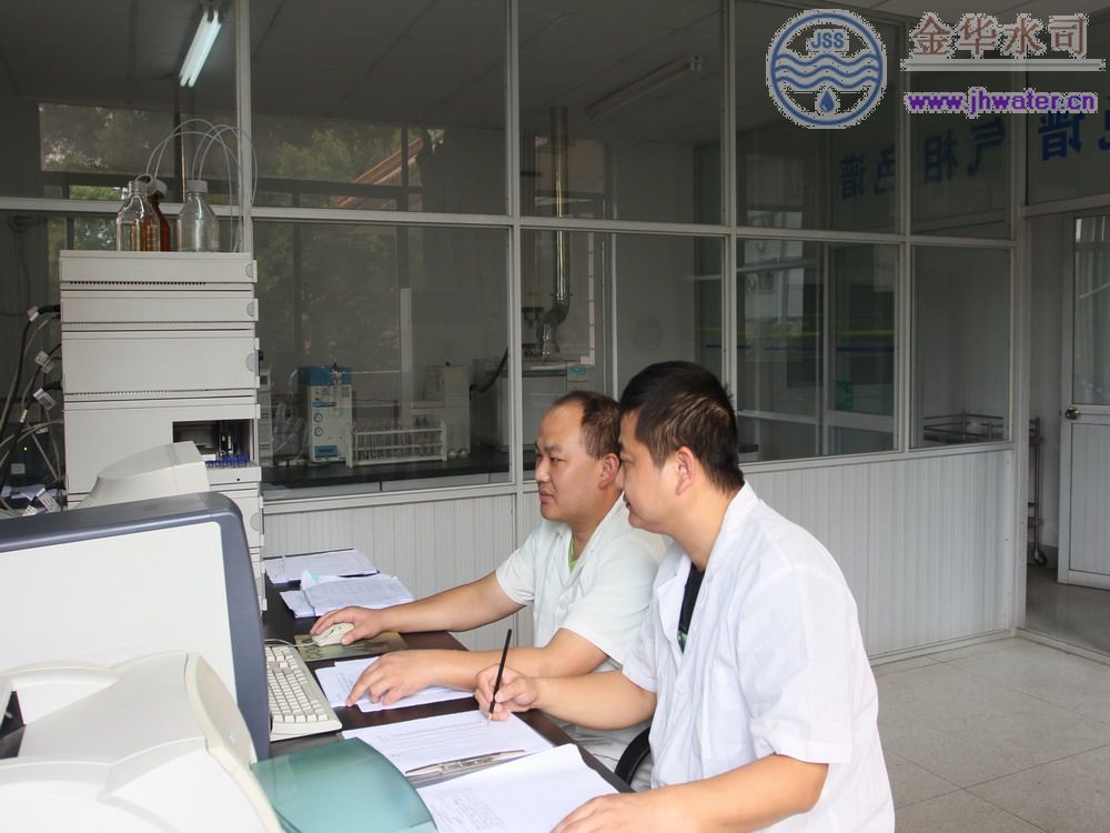 時值炎夏,市民用水量增加。為讓市民喝上安全優質自來水,金華市自來水公司要求加強監測,認真做好水質化驗工作,確保自來水在生產、供應過程的水質。圖為公司水質處員工在聚精會神化驗水質,嚴把水質關。(周明 文/攝)
