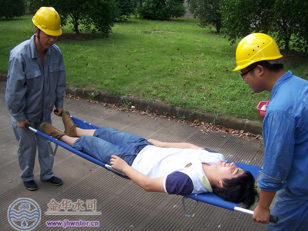 7月23日上午,金華市秋濱污水處理廠組織各班組相關人員在分控室進行觸電施救應急預案演練。