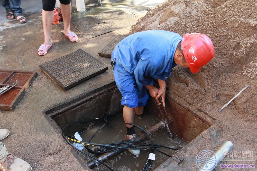 搶修中心立即調(diào)派楊銀法、李紅春兩位師傅趕赴現(xiàn)場。當(dāng)他們冒著高溫到現(xiàn)場后已是汗流滿面,但他倆顧不上歇息,立即查看事故原因。原來,有一輛貨車車輪壓破了宿舍樓下的窨井蓋,車輛陷下去壓壞了窨井內(nèi)的dn50自來水管,頓時清澈的自來水噴射而出。
