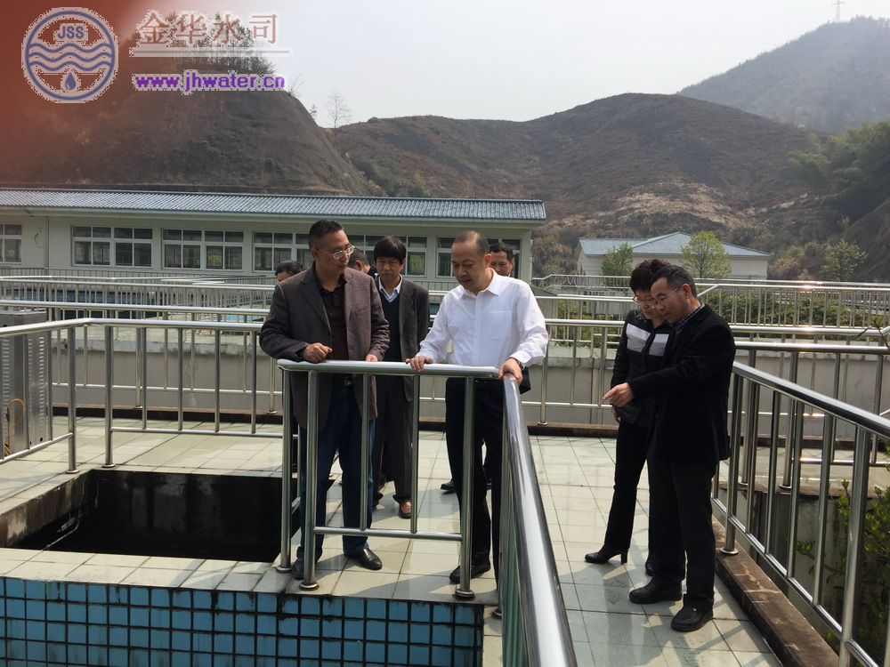3月18日,金華市委常委、公安局長毛善恩等一行在金華市建設局副局長張天純、公司總經理杜樂雙的陪同下,來到公司金沙灣水廠,調研“五水共治”工作。