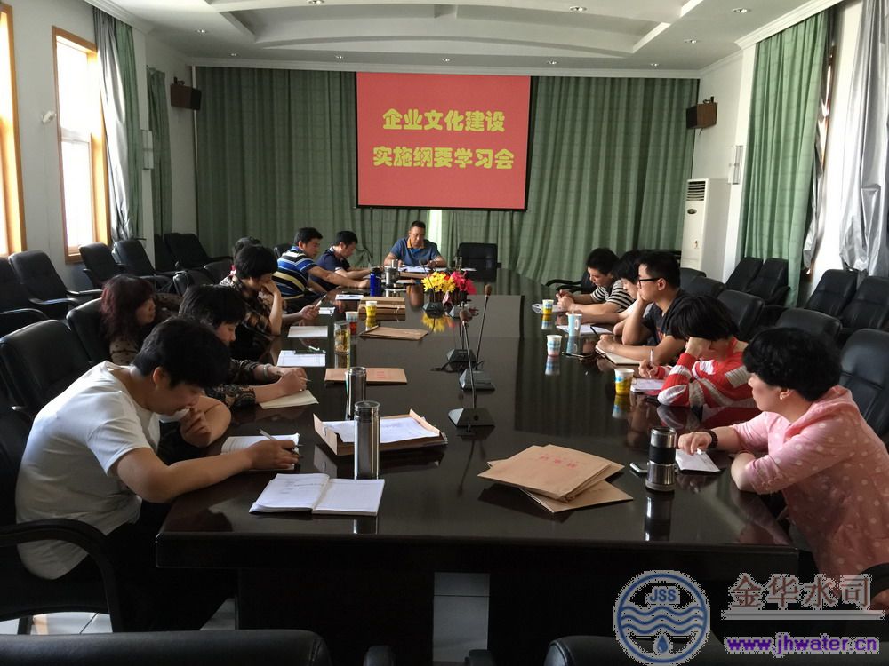 公司金沙灣水廠在4月份廠務暨安全生產會議上組織全體黨員、值班長等管理人員集中逐條認真學習《金華市自來水公司企業文化建設實施綱要》文件,要求各班組長會后組織班組成員進行學習并充分利用水廠的員工的微信群把文件內容進行發布,做到全員覆蓋。