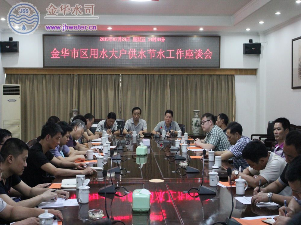 7月24日下午,金華市區用水大戶供水節水工作座談會在公司五樓會議室召開,來自市區各行各業的三十余家用水大戶代表到會。金華市建設局原公用處處長張克、公司副總經理周德強、金華市節水辦主任助理李新天與大家圍繞“水”話題展開座談。