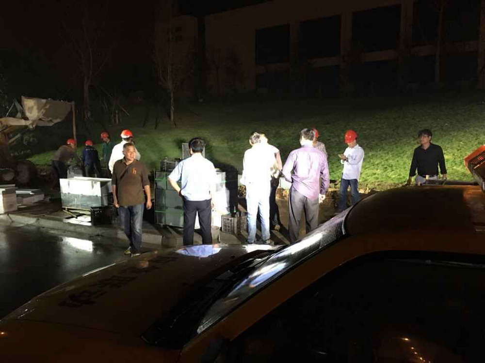 在各個施工現場,公司干部職工們揮汗如雨,緊張忙碌地工作,雖然是深夜,但沒有人喊苦喊累。公司及時安排,在深夜12點為大家買來了宵夜,分發到每一位職工手中,及時補充大家的體力。