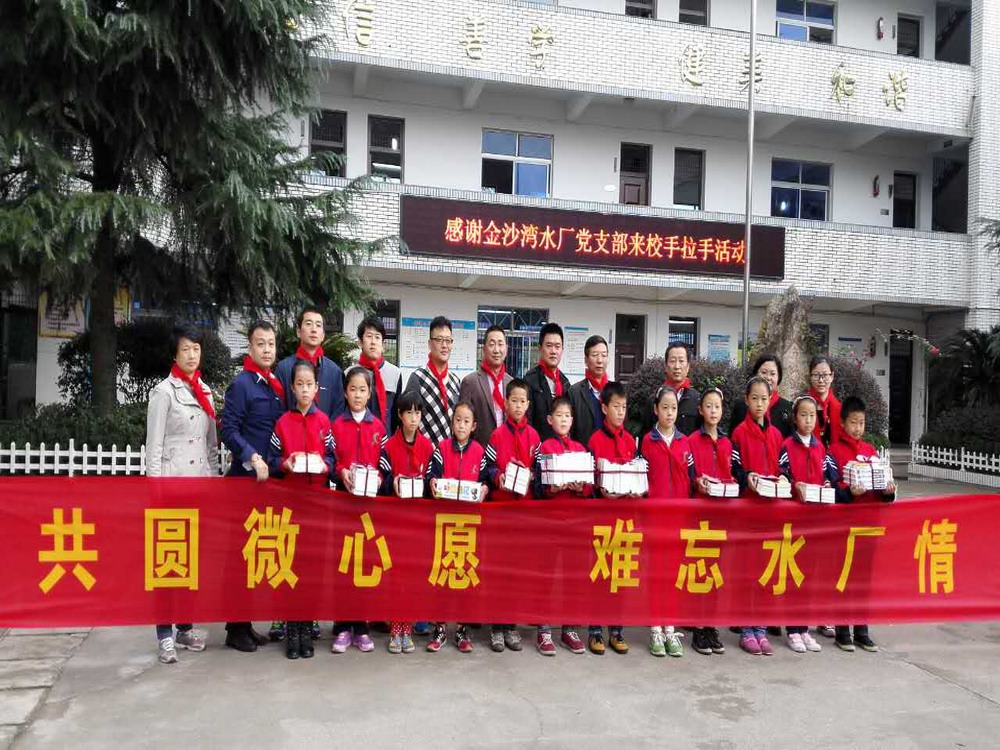 11月4日,公司金沙灣水廠支部黨員與所在社區的瑯琊小學結對認領了11個孩子的“微心愿”。在認領微心愿的時候,水廠支部黨員得知瑯琊小學一(1)班的黃佳恒小朋友家境困難,經過商議黨員們達成共識,以水廠黨支部的名義與黃佳恒小朋友結成對子,每個學期為他送上助學金,幫助他減輕負擔完成小學學業。