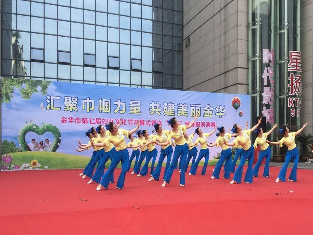 來自金華市機關單位的13支代表隊近300名女職工載歌載舞,同臺競技,用熱情奔放的舞蹈展示女職工的積極健康的精神風采。舞臺上,各參賽隊伍通過動感的旋律、歡快的節奏、自信的笑容和矯健的舞姿,將健美操運動的動作美、音樂美和形體美表現的淋漓盡致。比賽過程中,各參賽隊拉拉隊員熱情助威,現場氣氛熱烈。金水司17位女職工在市住建局女職委主任吳敬芝的帶領下,代表市住建局表演了“彩云之南”健美舞,她們柔美的舞姿,整齊的隊形,贏得到了評委們一致好評,榮獲了最佳風采獎。