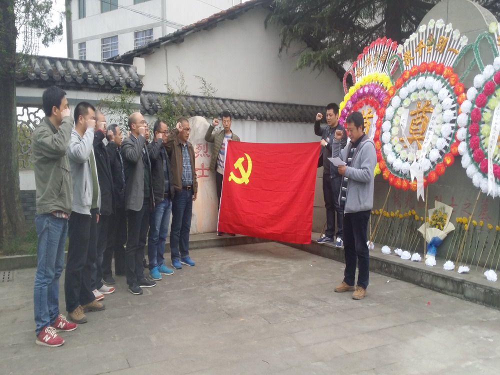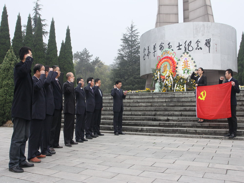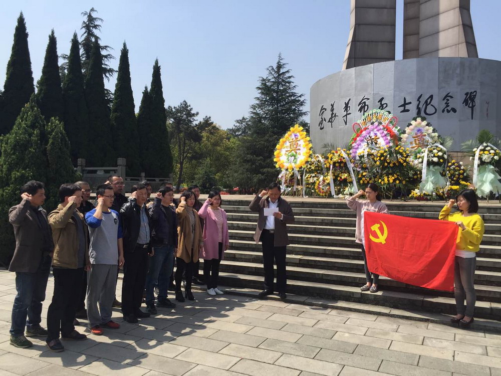 在革命烈士紀念公園,全體黨員面對莊嚴肅穆的紀念碑,敬獻花籃,鞠躬致敬,在鮮紅的黨旗下重溫入黨誓詞。深切緬懷革命先輩的豐功偉績,向革命先烈致以深深地敬意。