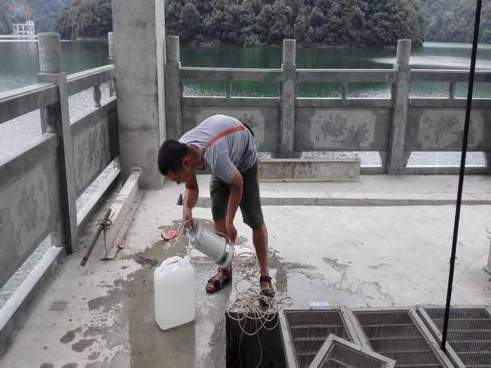 在高峰供水期間,特別是杭州重大國際峰會即將來臨,公司檢測中心在完成日常水質檢測的同時,做到及時掌握原水水質動態,增加對水源水的水質監測頻次。圖為檢測中心檢測人員在安地水庫采集原水水樣。 (胡文佳 文/攝)