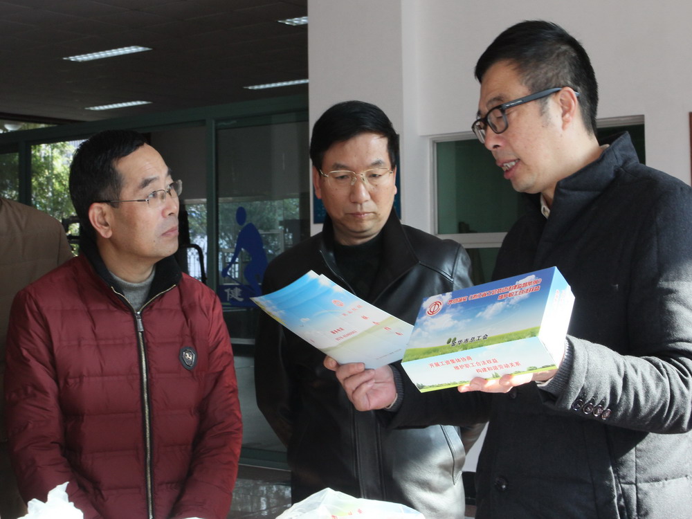 在公司供水營業大廳,蔣永根親切慰問了供水職工,向他們送上《浙江省工會勞動法律監督條例》、《工會法律援助服務指南》等宣傳資料,把總工會的關懷送到一線職工的心坎上。他希望廣大職工要學法、懂法、用法,增強法律意識,提高自我保護意識。