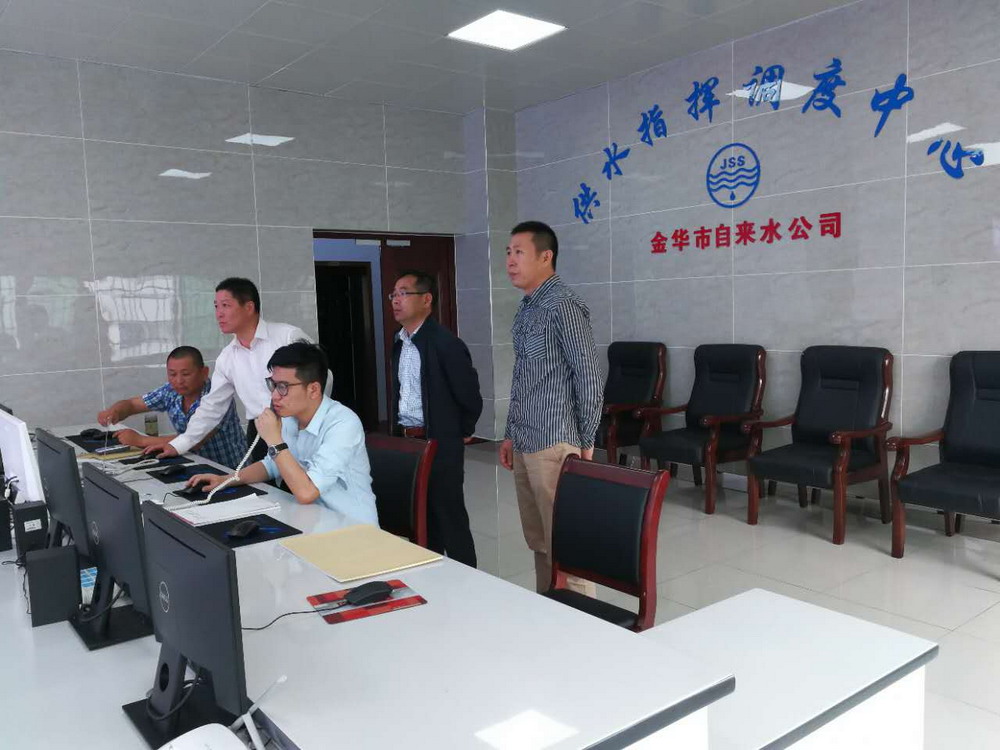 金華市自來水公司新供水指揮調度中心正式完成改造升級,于 公司中心調度室自2005年10月搬至公司輔樓五樓后,已使用超過10年,由于辦公設備、系統軟硬件均處于24小時不間斷作業中,損耗嚴重,且多數未更新,存在較多安全隱患。在公司各級領導的重視下,在工程技術處的幫助下,完成升級改造。新的供水指揮調度中心將進一步強化科學精確的壓力調度,確保供水管網能夠更加安全平穩的運行。 杜樂雙總經理、周德強副總經理檢查了供水指揮調度中心的軟硬件工作情況,進行了現場操作檢測。并對中心的全體工作人員提出了新的要求,要求大家在軟硬件升級的同時,明確責任,刻苦鉆研,提升素質,增強業務能力,發揚水司艱苦奮斗、迎難而上的優良傳統,為公司供排水事業做出更大的貢獻!