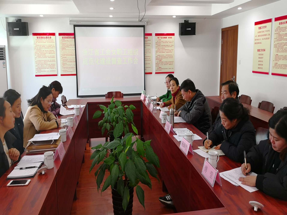 2018年1月10日上午,浙江省工會女職工組織規范化建設督查工作第三組蒞臨我公司,督查公司女職工組織規范化建設工作情況,公司黨委書記吳建誠、工會主席王芳海、公司女職委參加考核會。