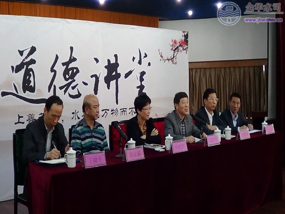金華市文明辦副主任葉桂竹、市建設局直屬機關黨委副書記謝良明、市文明辦城市處處長丁曉平和公司黨政工領導在開講儀式主席臺上就坐。