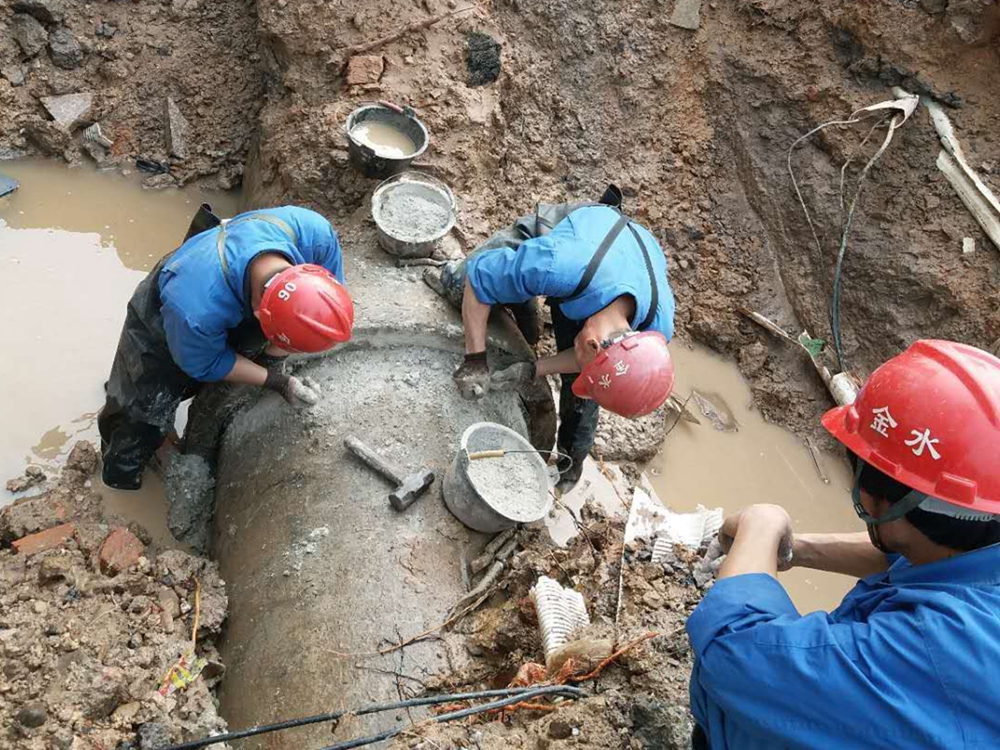 2018年1月18日上午8點16分,公司應急搶修保障處接市民來電,雙龍南街與雙溪西路交叉口的今日大酒店門口有水管漏水,立即派遣搶修人員攜帶相關搶修設備趕赴現場。經過現場排查,發現為dn800的水泥總管大頭連接處漏水。為了保障附近用戶的正常用水,應急搶修保障處工作人員立即采取打灰口的修理方式進行搶修,放棄中午休息時間,經過6個小時的連續搶修,于下午14時完成修理,恢復正常供水。