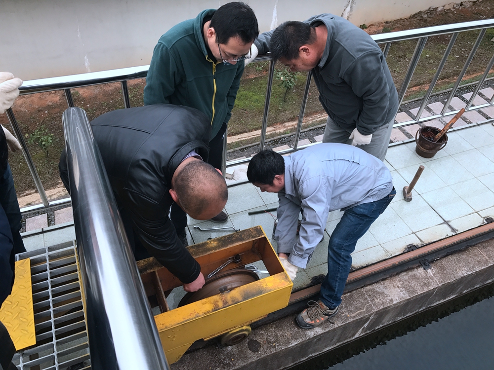 3月6日,廠家技術人員到公司金沙灣水廠檢測目前正在使用的四臺吸泥行車,指導水廠維修人員如何修理,并針對平時設備保養、維修等問題給出合理答復意見。通過檢測,解決了吸泥行車在行駛過程中發生跑偏、有異響等問題。