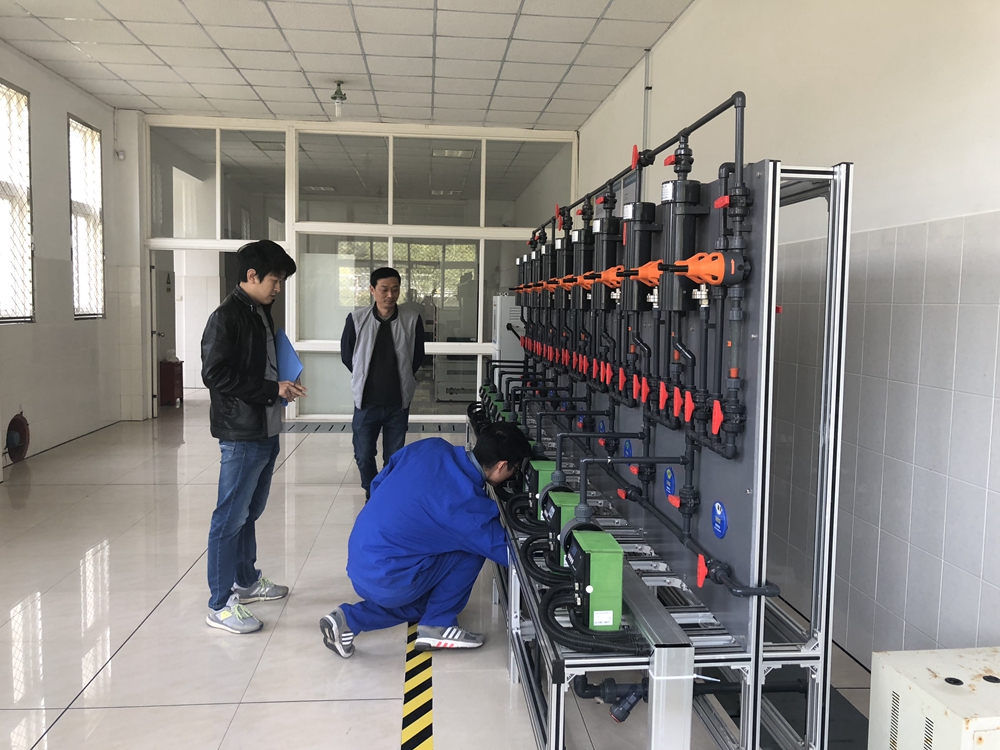 實踐操作現場,考核內容為濾池反沖洗手動操作和次氯酸鈉投加泵手動切換。在實操過程中他們思路清晰、操作規范、有條不紊,展現了良好的業務素養和實操技能。