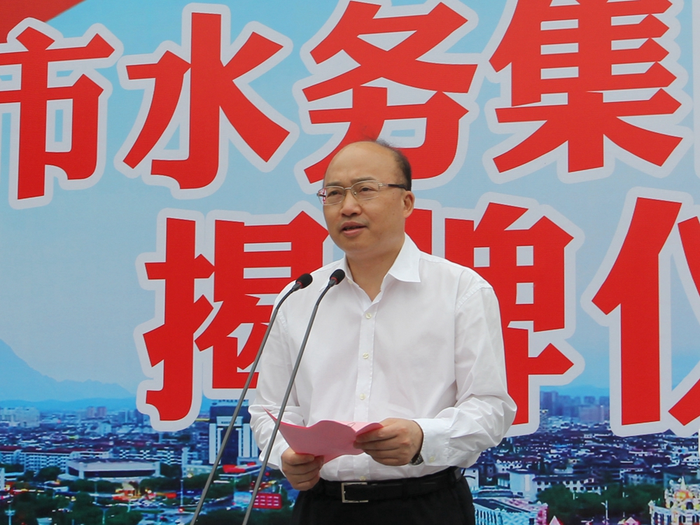 今天,我們?cè)谶@里隆重舉行金華市水務(wù)集團(tuán)有限公司揭牌儀式,這是一件大事、難事、喜事,標(biāo)志著市區(qū)國(guó)有企業(yè)改革邁出了關(guān)鍵性一步,標(biāo)志著我市水務(wù)行業(yè)發(fā)展實(shí)現(xiàn)歷史性了突破。在此,我代表市委、市政府,向市水務(wù)集團(tuán)的成立表示熱烈祝賀!