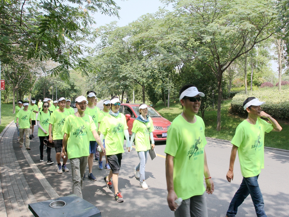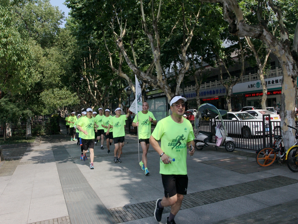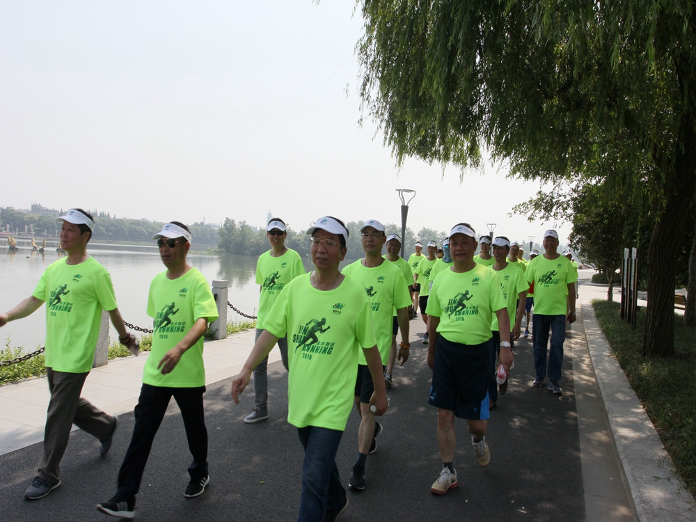 揭幕儀式后,在金華市水務集團籌備組組長葉曉華領跑下,100多名水務集團干部職工身著“生命至上 安全發展”字樣的嫩綠色運動服,邁著整齊有序的步伐,健步跑在婺江沿江綠化道上。他們沿著婺江東路跑向八詠橋,繞過金華婺劇院,穿過通濟橋……全程6公里。沿途的市民群眾紛紛駐足觀看,以贊許的目光目送著集團員工隊伍漸漸遠去。
