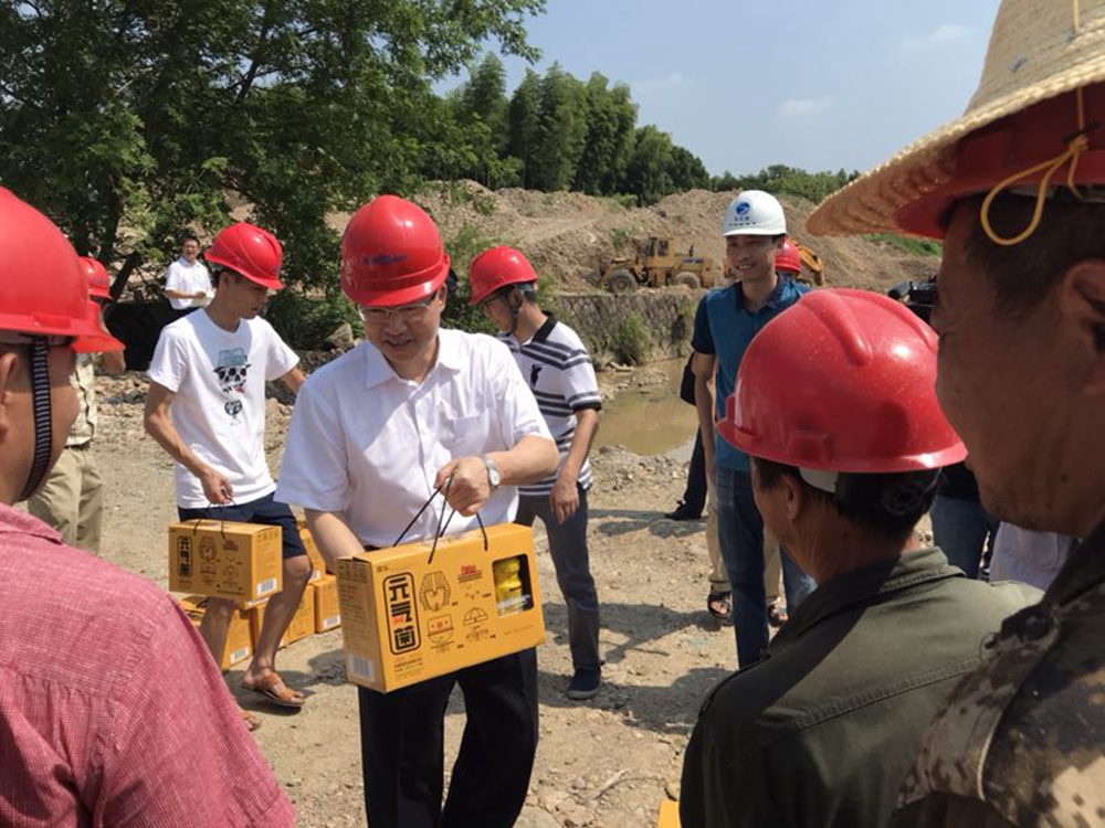 8月7日上午,市委副書記、市長(zhǎng)尹學(xué)群,市委常委、組織部長(zhǎng)余杰,人大常委會(huì)副主任張榮貴,副市長(zhǎng)陶葉萍,政協(xié)副主席傅利常一行來到梅溪流域綜合治理工程蘆家閘工地,看望慰問高溫下堅(jiān)守崗位的一線工人,了解項(xiàng)目進(jìn)展情況和存在困難,為冒著酷暑工作的城市建設(shè)者送上慰問品。市水務(wù)集團(tuán)籌建組組長(zhǎng)陳汝森等陪同慰問。