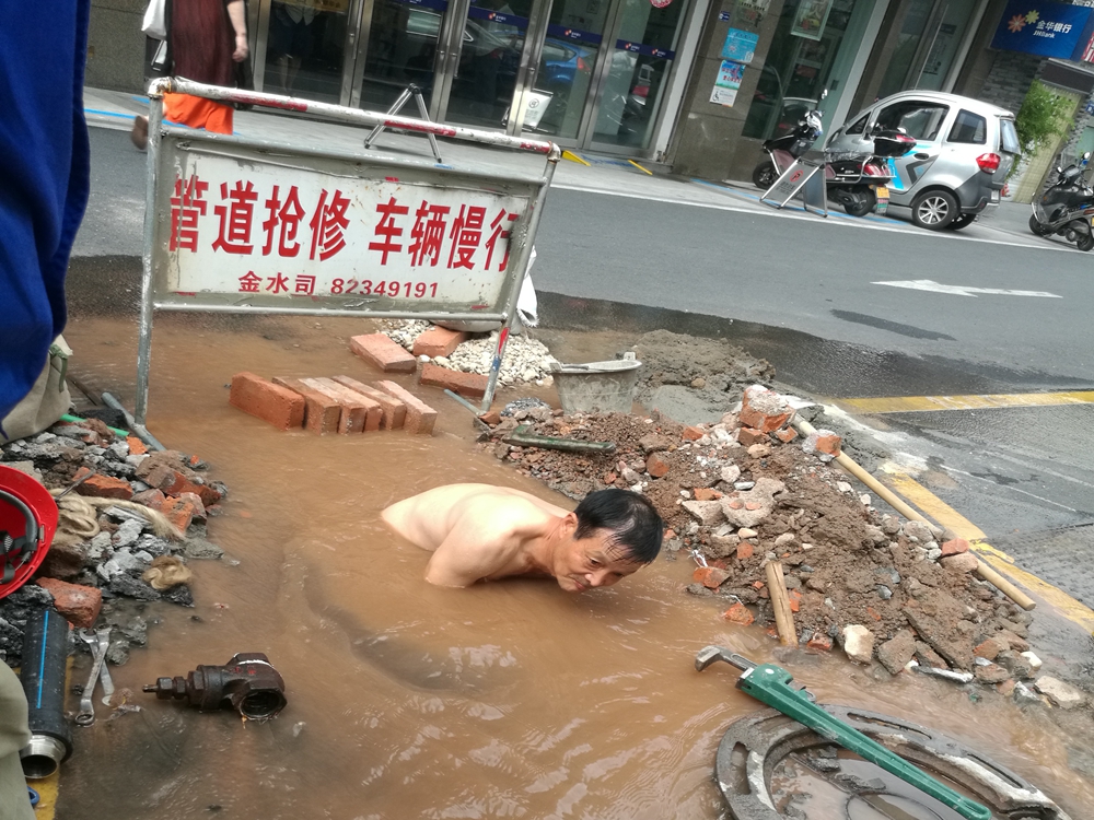 2018年8月17日下午,金華市自來水公司應急搶修保障處接通知:市區人民西路72號附近有水管漏水。于是立即派遣工作人員前往現場查看,現場水管破裂,水流溢出路面,為了能迅速止水和搶修,修理人員楊根有毫不猶豫的脫掉了外衣和外褲赤膊跳入水中。他不顧環境惡劣,在渾水中浸泡了近20分鐘完成了搶修,為附近的居民恢復了正常供水。