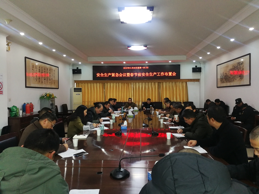 2019年1月28日上午,杜樂雙總經理召集公司中層以上管理人員、各部門安全員及保安班長在五樓2號會議室召開了春節前安全生產緊急會議暨春節前安全生產工作布置會,傳達了省、市安全生產緊急會議精神,強調安全生產工作必須警鐘長鳴、常抓不懈;必須強化思想認識,不能存有僥幸心理;必須思想高度重視,強化細化各環節管理。