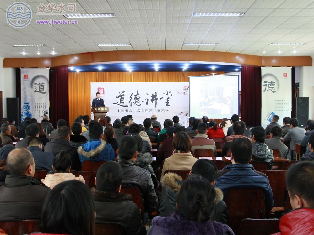 公司總經理吳立新、黨委書記吳建誠先后講話。公司領導在講話闡述了在公司開展道德講堂活動具有重要意義,對此非常支持,只要大家團結一心,才能干事業、謀發展,才能克服前進道路上的重重困難,才能使公司的供排水事業不斷上臺階,我們的工作才會達到“讓政府放心,讓用戶滿意”。公司領導還強調指出,我們每個人都要從自身做起,發揚團隊精神,弘揚集體力量,為了集體的榮譽而不懈努力,公司要切實擔負起作為省文明單位的責任,讓道德在生活、工作中扎根、開花。活動在宣講員向大家贈送道德格言卡片中圓滿結束。