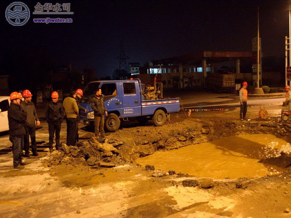 搶修人員查勘后確認是一條dn1200的供水總管發生了故障。險情立即報告公司領導,公司吳立新總經理,杜樂雙、周德強副總經理、曹利群總工等多位公司領導先后趕往現場,市建設局領導張天純副局長等人聞訊后,也馬上趕到現場了解情況,指揮搶修。