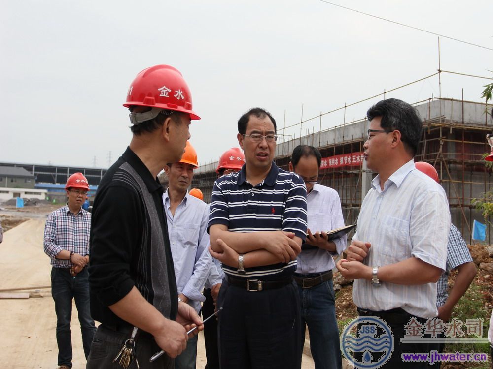 5月12日,金華市委書記徐加愛檢查市區重點建設項目。徐加愛書記在副市長祝倫根、市建設局局長潛高星等領導陪同下先后來到公司承建的市第二水廠預選址所在地和秋濱污水處理廠二期工地,認真了解項目進展情況,明確第二水廠在年內動工、污水處理廠二期年內完工投入運行的建設期限要求,重點了解和協調解決項目推進過程中遇到的困難。(金春景 文/攝)